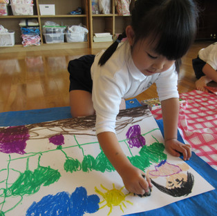 芋掘りの時の絵も、クレヨンと絵の具を使って描きましたよ。