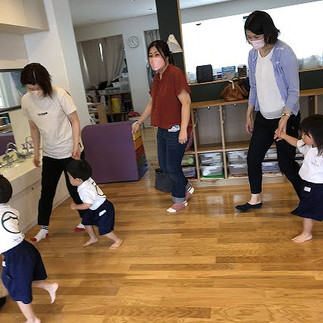 離れることが難しかったお友だちも、お家の人のお膝の上で一緒に参加することができ、活動を行っていくうちに笑顔を見せてくれるようになりましたよ🎵