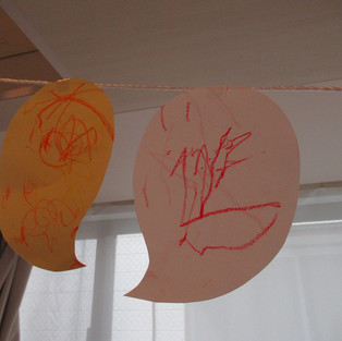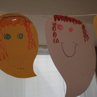 1歳から4歳のお友だちに、それぞれ自由に書いてもらうと、個性豊かな可愛いおばけさんが、たくさんできましたよ😊