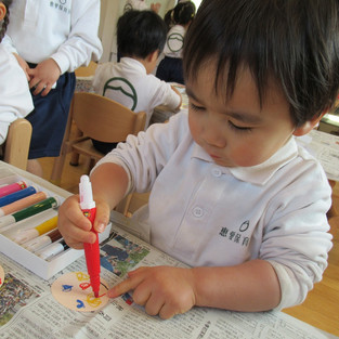 みんなの前に立ってとても緊張していたSくんですが、「顔をのりでつけて、紙コップに折り紙をつけました」と教えてくれました。