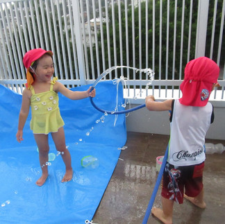 今年の夏は雨の日も多く、思うように水遊びなどができないこともありましたが、晴れ間を見つけて、夏の遊びを思いきり楽しみました🎵
