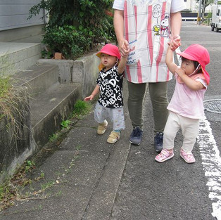 歩行ができる子は、保育士としっかり手を繋ぎ自分の足で歩きました。