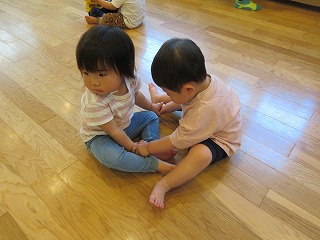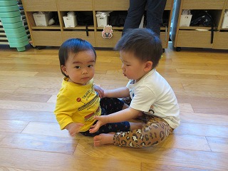 わかば組のお友だちと一緒に過ごす時間も多いなか、こうやって二人でベビージムに興味を示して遊んでいました。
