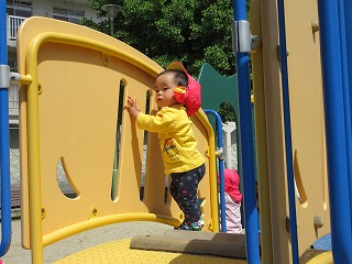 歩けるようになり、一生懸命遊具につかまりながら歩き、滑り台まで頑張っているお友だち、太鼓橋を上ることに夢中で取り組んでいるお友だち、それぞれ成長を感じます💗💗