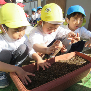 こちらは、チューリップの球根を植えています🌷 ふたばぐみさんも、ずいぶん植物の扱い方が上手になりました✨