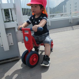 子ども達の大好きな三輪車など、乗り物に乗って屋上で遊びました。