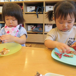 うまくいかずに、折り紙がぐちゃっとなることもありましたが、子ども達は集中してちぎっていました。