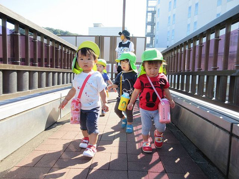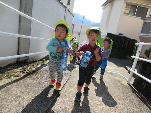 散歩の道中でも、メリハリをつけながら、子ども達が意欲的に楽しむことができるようにしています。