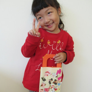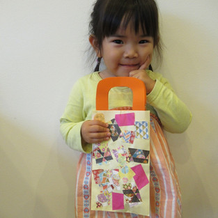 参拝に行かなかったふたば組さんも、千歳あめの袋を自分達で作りました。いろいろな紙を自分達で切ってデザインし、のりで貼りました。それぞれ素敵な模様ができましたよ!