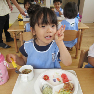 姉妹園合同給食も、定期的に行っております(*^^)v いつもと違うお友だちと一緒に食べることで、新鮮な気持ちで頂くことができたようですね♪ とっても楽しかったね💕