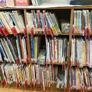 季節の絵本や、子ども達が関心のある図鑑以外にも、行事につながりそうな絵本を置いたりしています。