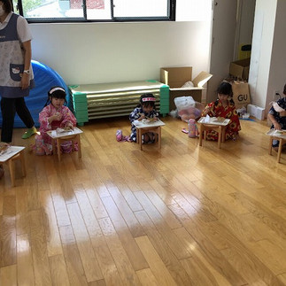 夏祭り当日は、みんな体操服ではなく、浴衣・甚平を着て登園しました。