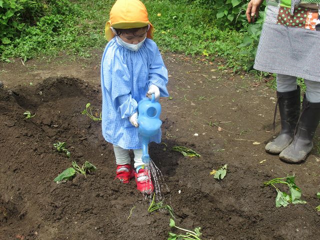 4月から、つぼみ組さんも畑のお世話を頑張っています。