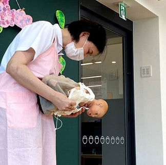 「私も抱っこしたい!」「重たい!」「可愛い!」などと、大好きな赤ちゃんに触れたり抱っこできて、とっても嬉しそうでした。