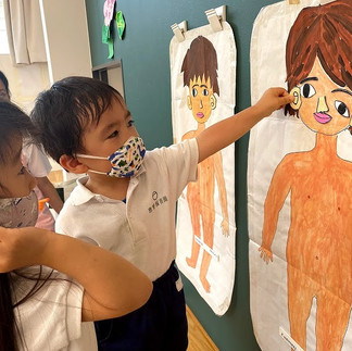 からだの場所の名前とその働きについてお話があり、みんなで実際に絵の中にパーツを貼って、どんな働きがあるのか考えてみました❕❕